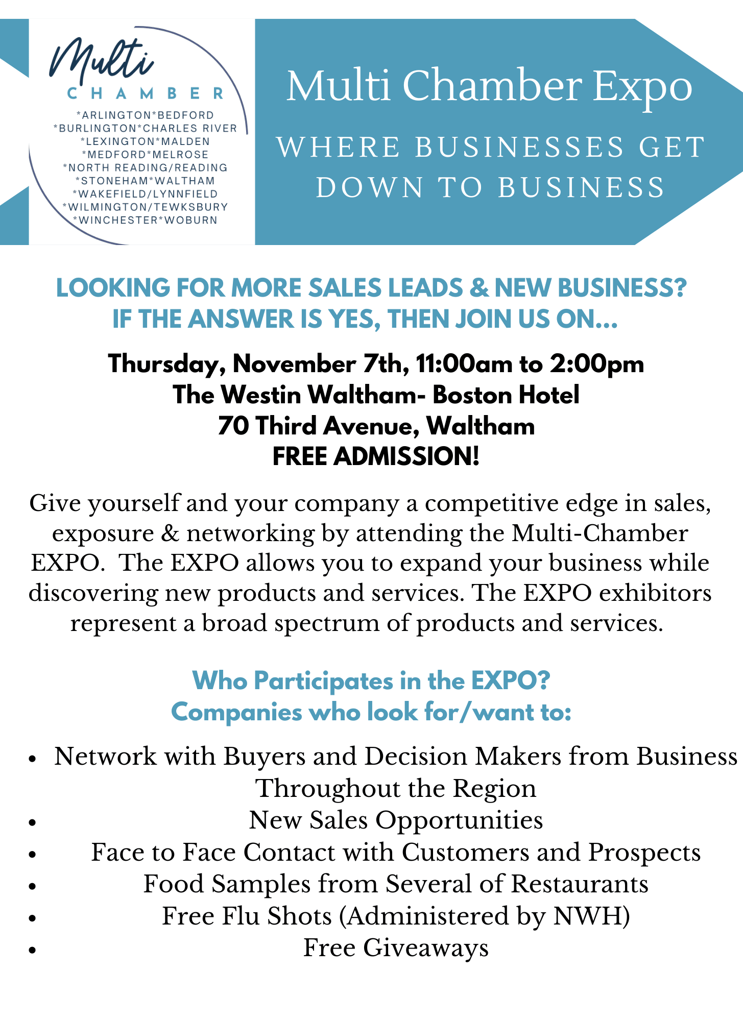 • Receive - New Business Contacts! Raffle Prizes! Food Samples & Special Expo Advertising.