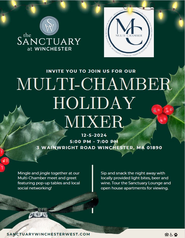 Mingle and jingle together at a multi-chamber meet and greet featuring pop-up tables and local social networking! Sip and snack the night away with locally provided light bites, beer and wine. Tour the Sanctuary Lounge and open house apartments for viewing.